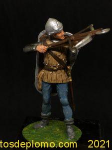 Los ballesteros genoveses eran mercenarios, la ballesta era un arma tecnológicamente avanzada, con gran potencia de penetración pero poca precisión en tiro largo y escasa cadencia de tiro, capaz de lanzar hasta dos virotes por minuto a 200 metros. Se utilizaba prácticamente a quemarropa para perforar las armaduras de los caballeros.