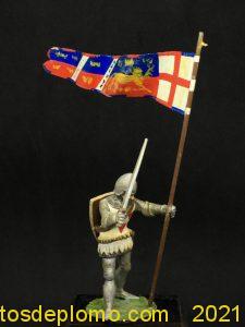Durante la Batalla de Crécy (1346) era el portaestandarte del Príncipe Edward y fue quien al ver al Príncipe abatido, gritando; “¡Por Eduardo y San Jorge, al hijo de reyes!” dejó la bandera en tierra y luchó a pie junto a él. Cuando el apoyo de sus tropas llegó, volvió a izar su estandarte.